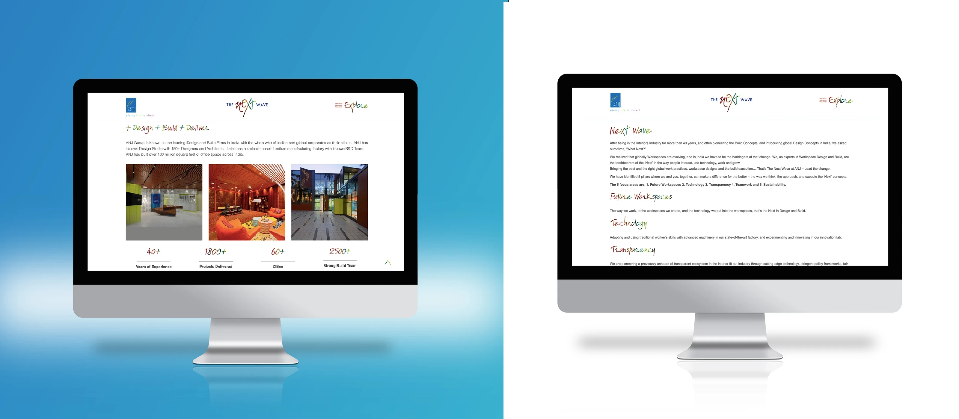 ANJ, a 40-year veteran in the Design & Build industry, was launching its new brand identity: NEXT WAVE. However, their existing digital presence contradicted this new vision of innovation.