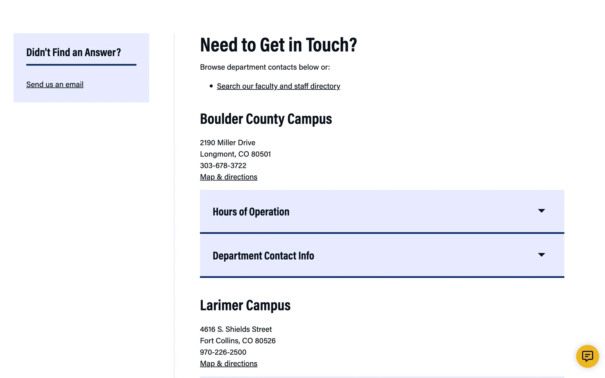User faced FRCC's contact page with multiple department options.