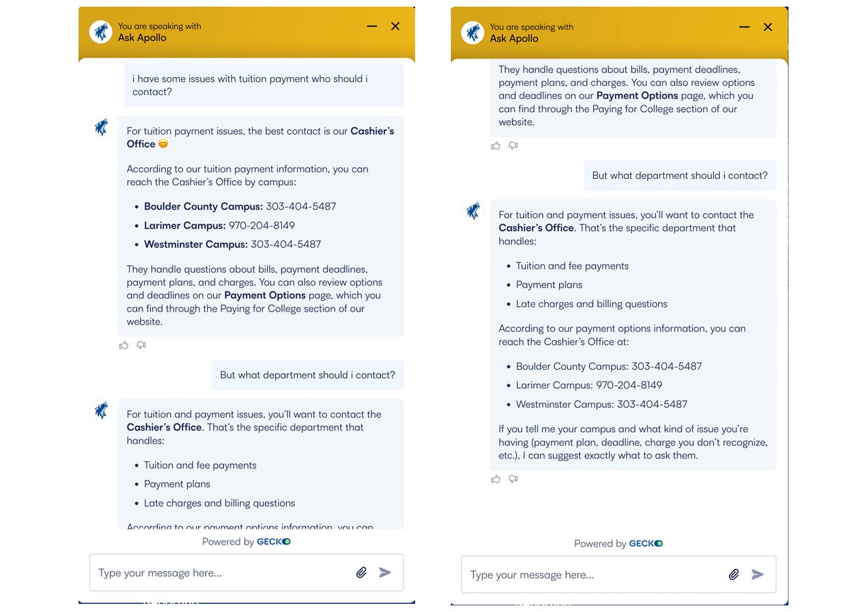FRCC’s new AI chatbot routinely surfaced incorrect or incomplete answers on critical topics like deadlines, payments, and financial aid. With no human verification layer, students couldn’t trust the guidance they received—leading to misinformation risks and confusion.